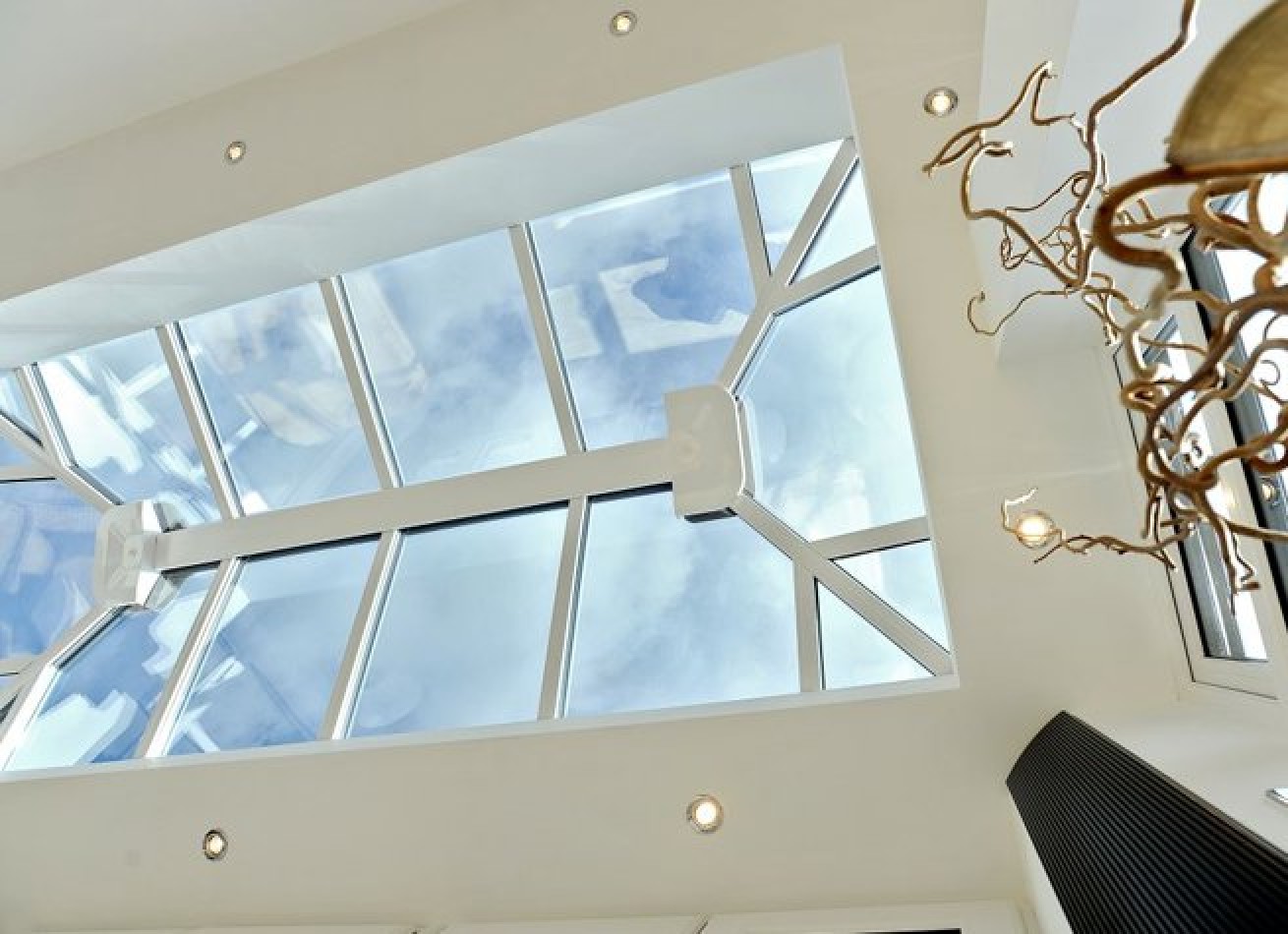 The Livin Room Orangery uses the well proven Ultraframe Classic roof at its heart, and a well-engineered internal framework is added, then plastered, to give a perimeter ceiling all the way round.